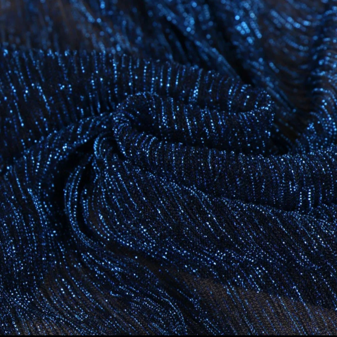 Our Lurex Viscose Shimmer Fabric blends softness with sparkle. Designed with fine glitter detailing and a comfortable stretch, it offers a graceful drape and a luxurious shimmer finish. Ideal for elevating everyday looks or special occasions.