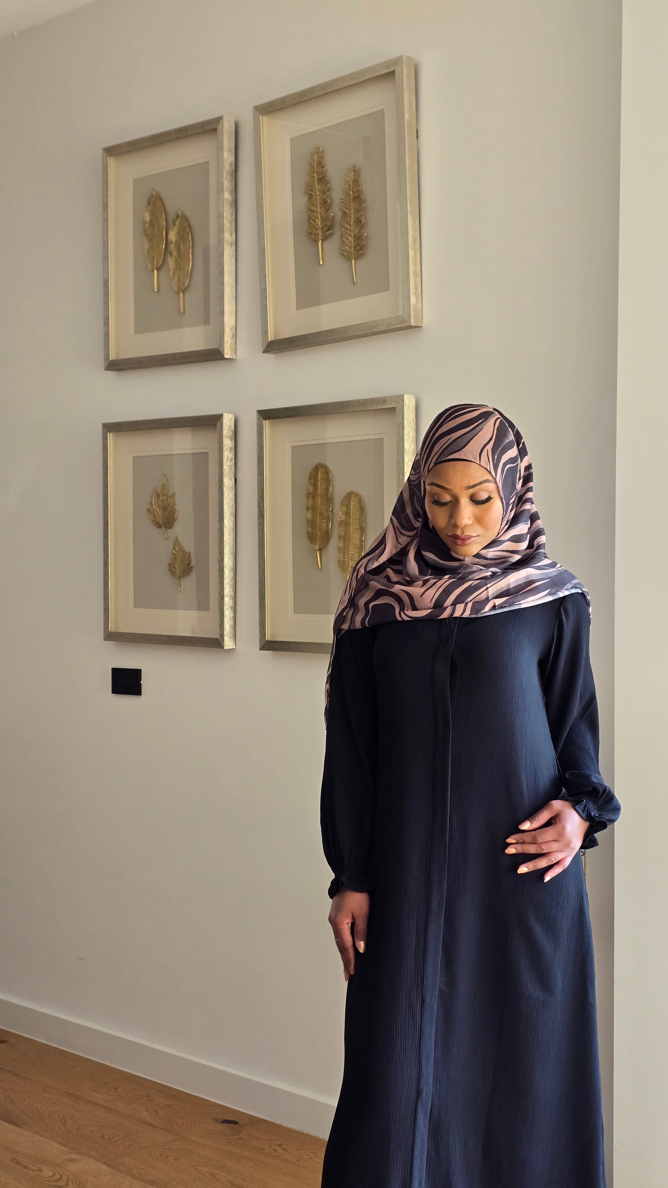Timeless classic abaya in Premium zoom fabric. Front-open design for versatile styling. Plain and minimal look for an effortlessly elegant feel. Elasticated cuffs for comfort and a subtle gathered effect. Full-length silhouette with a clean finish. Ideal for layering or wearing on its own. Perfect for everyday wear, formal events, or religious occasions. A must-have staple in every modest wardrobe.