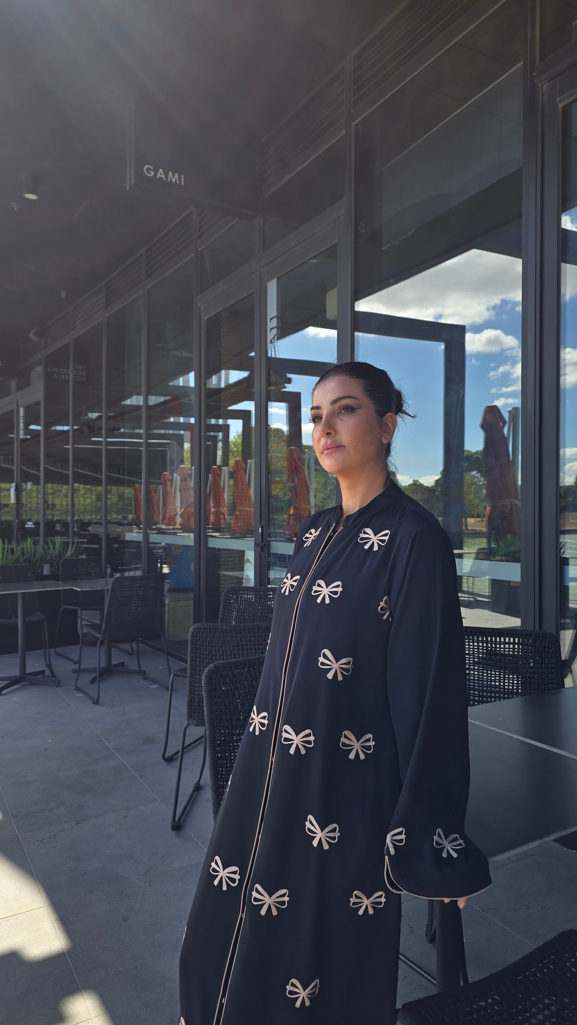 - Contrast piping along the front and sleeves for a defined, tailored look