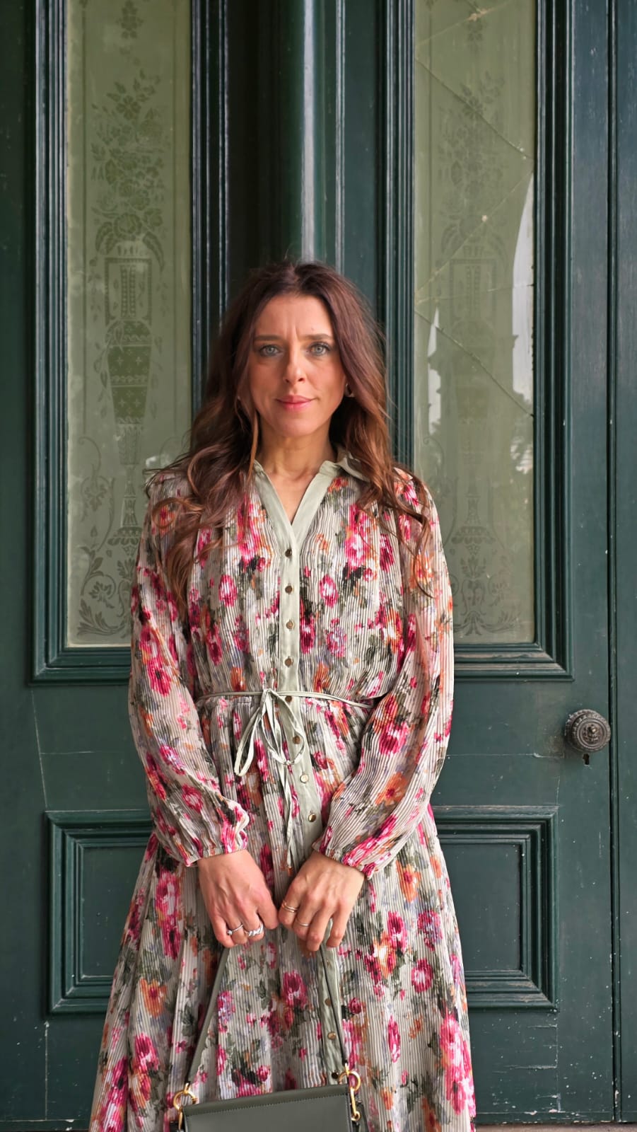 Structured collar for a clean, tailored neckline Plain central panel with delicate gold button detailing Elasticated waist for a flexible, flattering fit Matching belt for adjustable styling and added definition Ideal for both casual elegance and polished daywear.