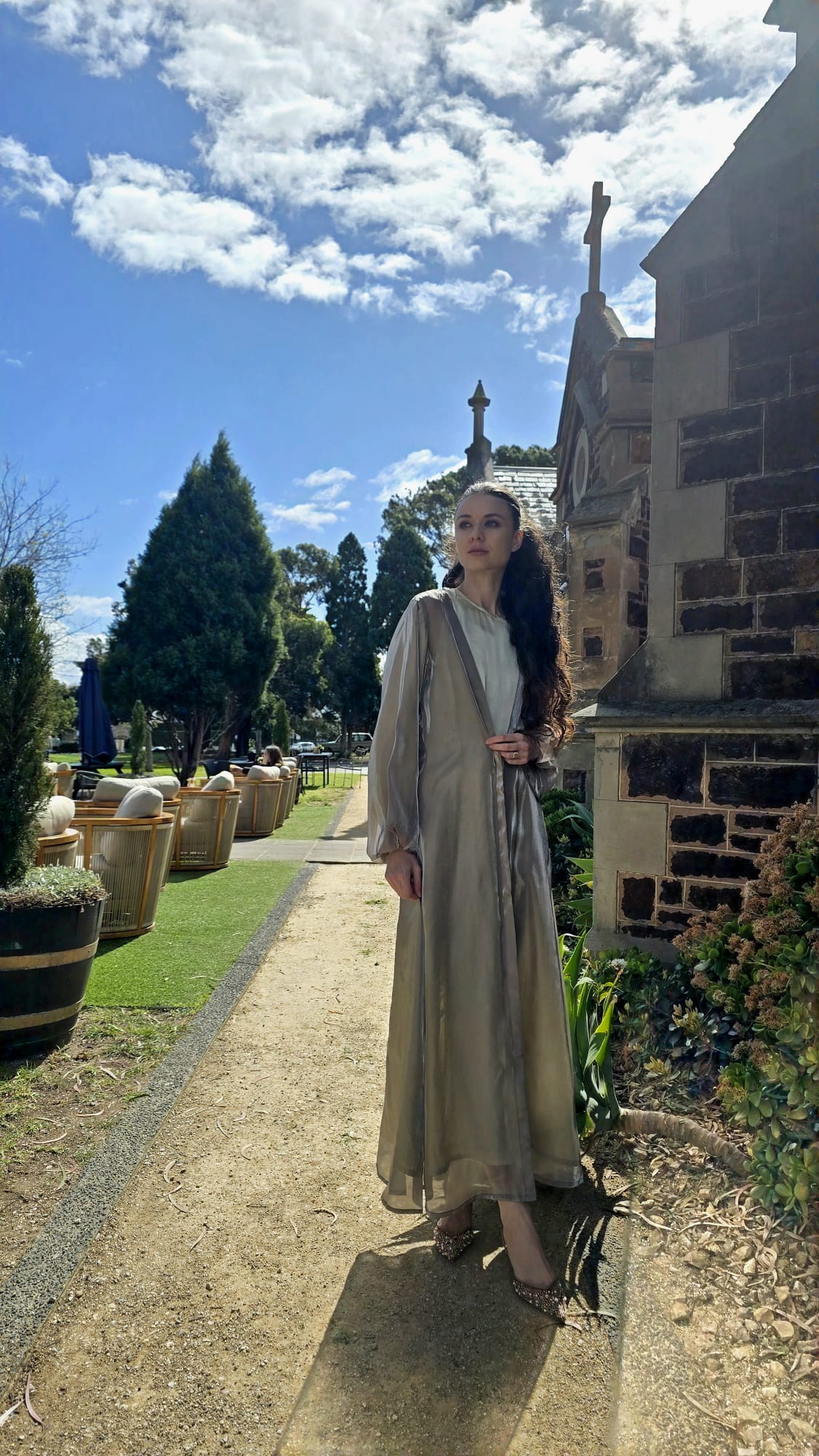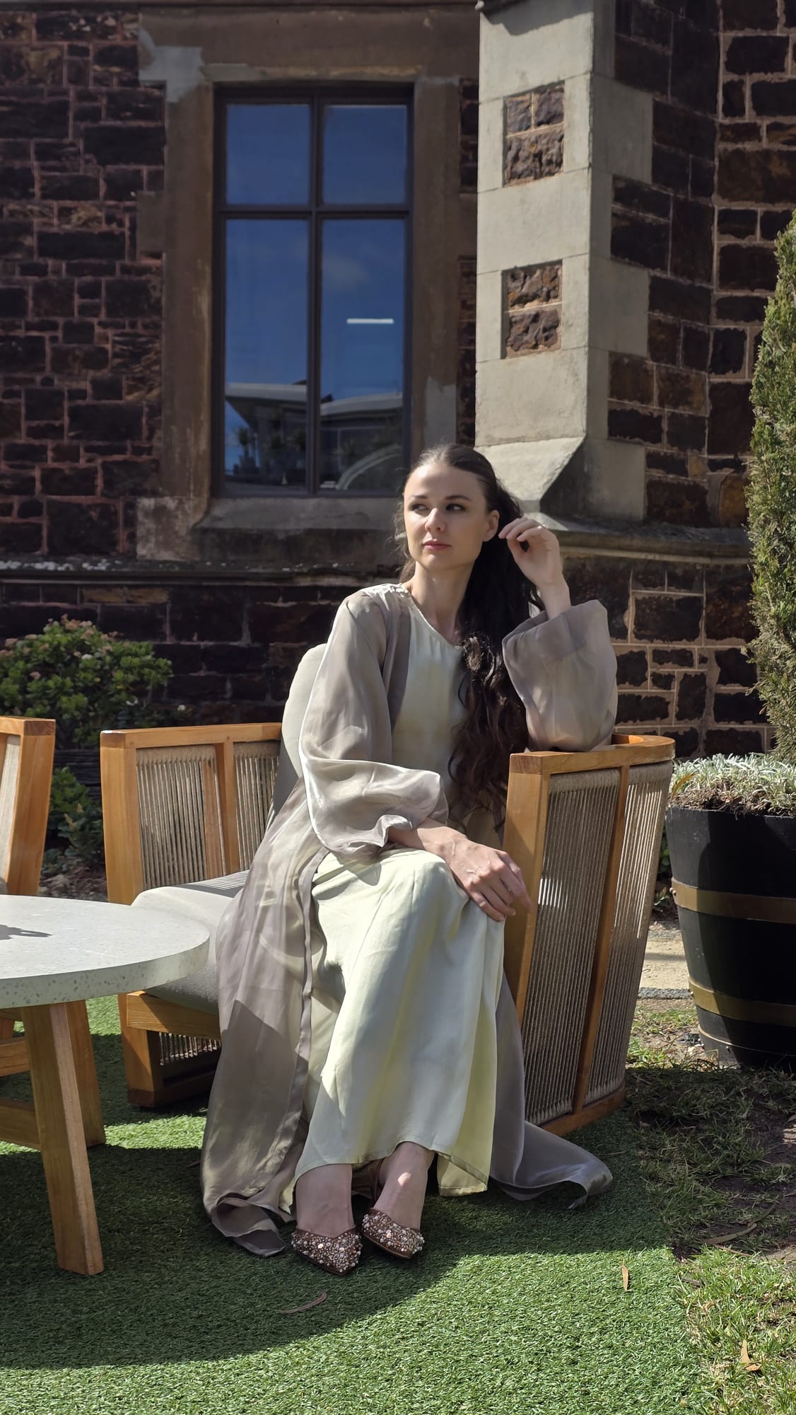 Two-piece abaya set: organza shrug + satin sleeveless inner