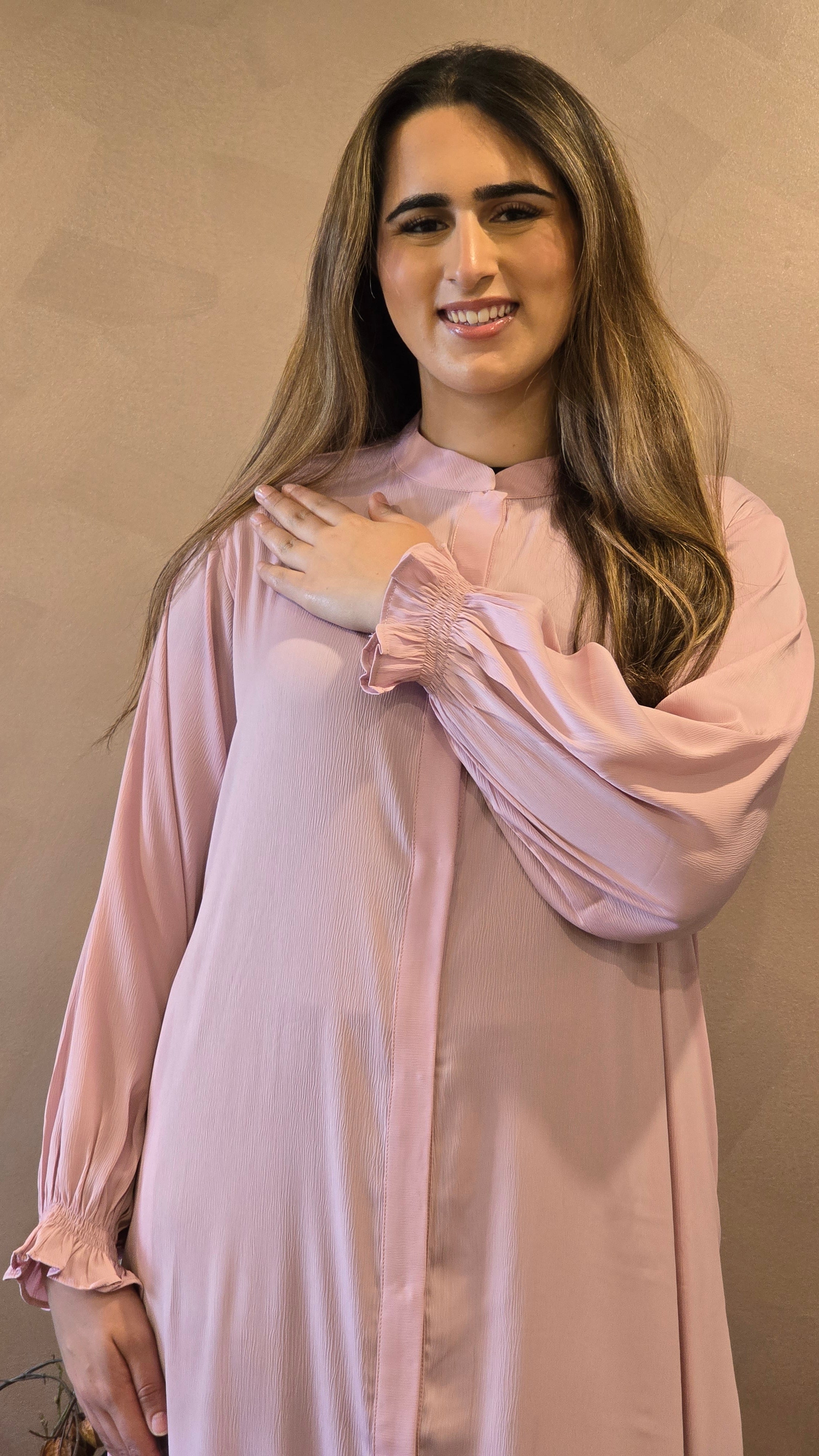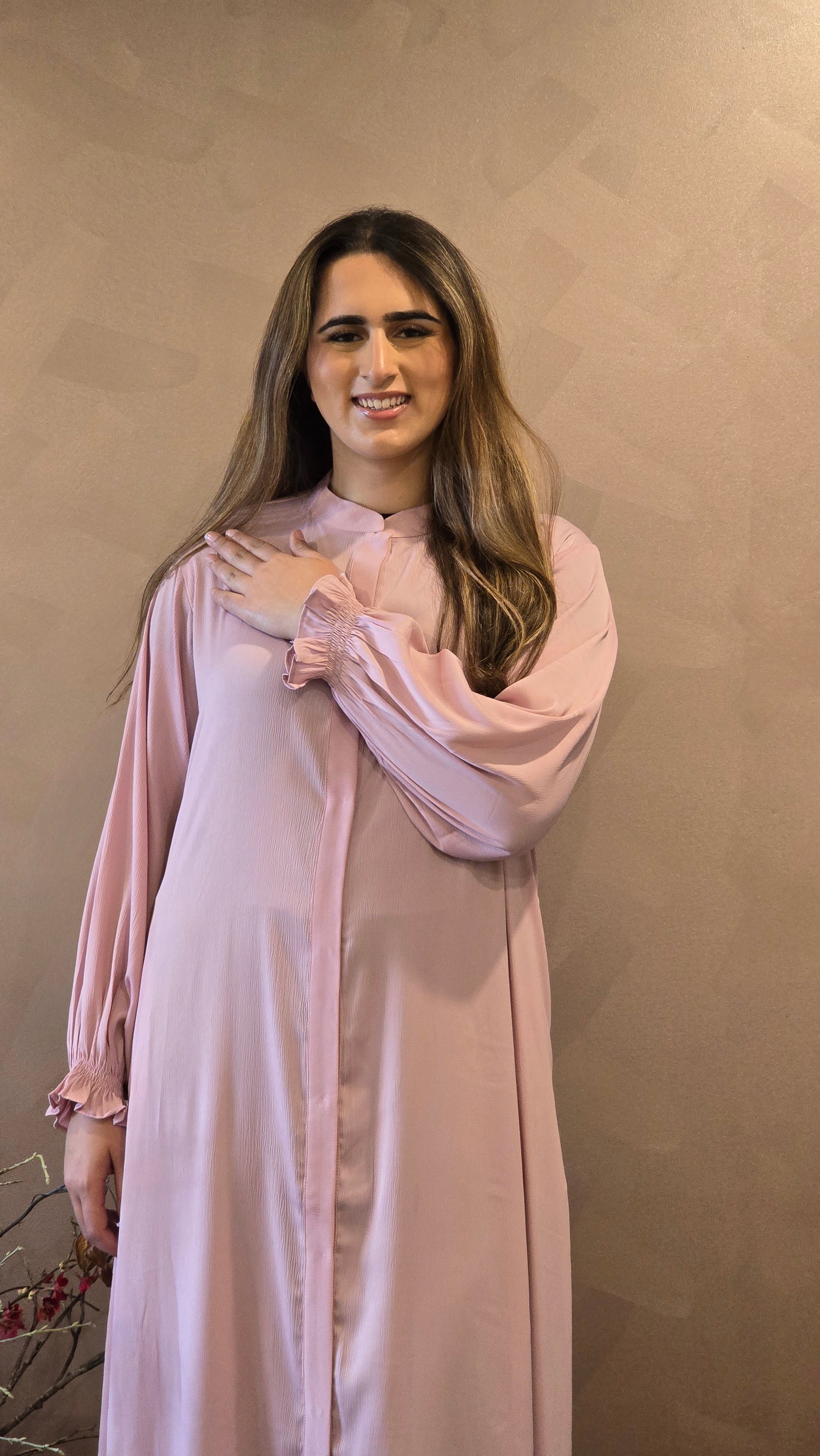 Timeless classic abaya in Premium zoom fabric. Front-open design for versatile styling. Plain and minimal look for an effortlessly elegant feel. Elasticated cuffs for comfort and a subtle gathered effect. Full-length silhouette with a clean finish. Ideal for layering or wearing on its own. Perfect for everyday wear, formal events, or religious occasions. A must-have staple in every modest wardrobe.