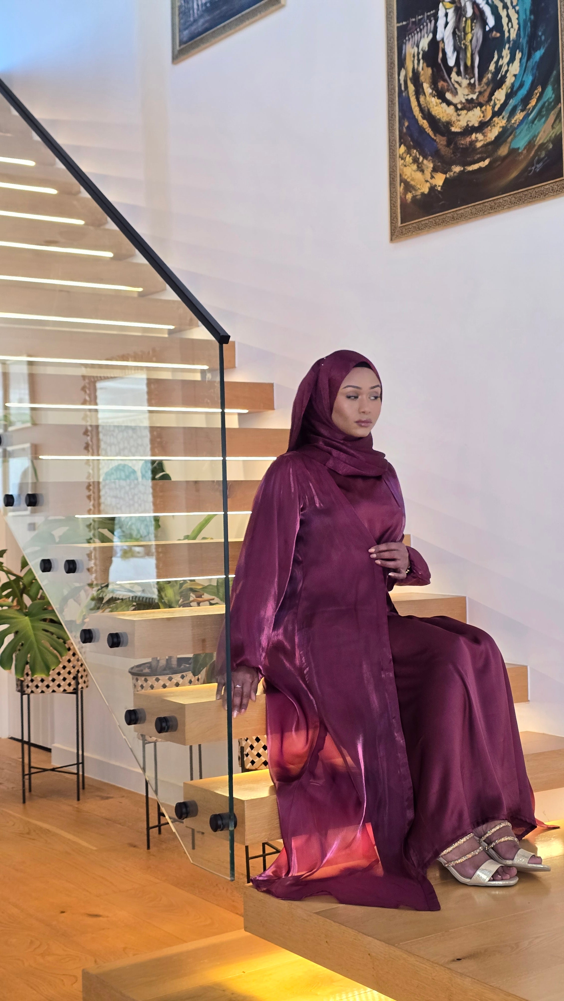 Two-piece abaya set: organza shrug + satin sleeveless inner