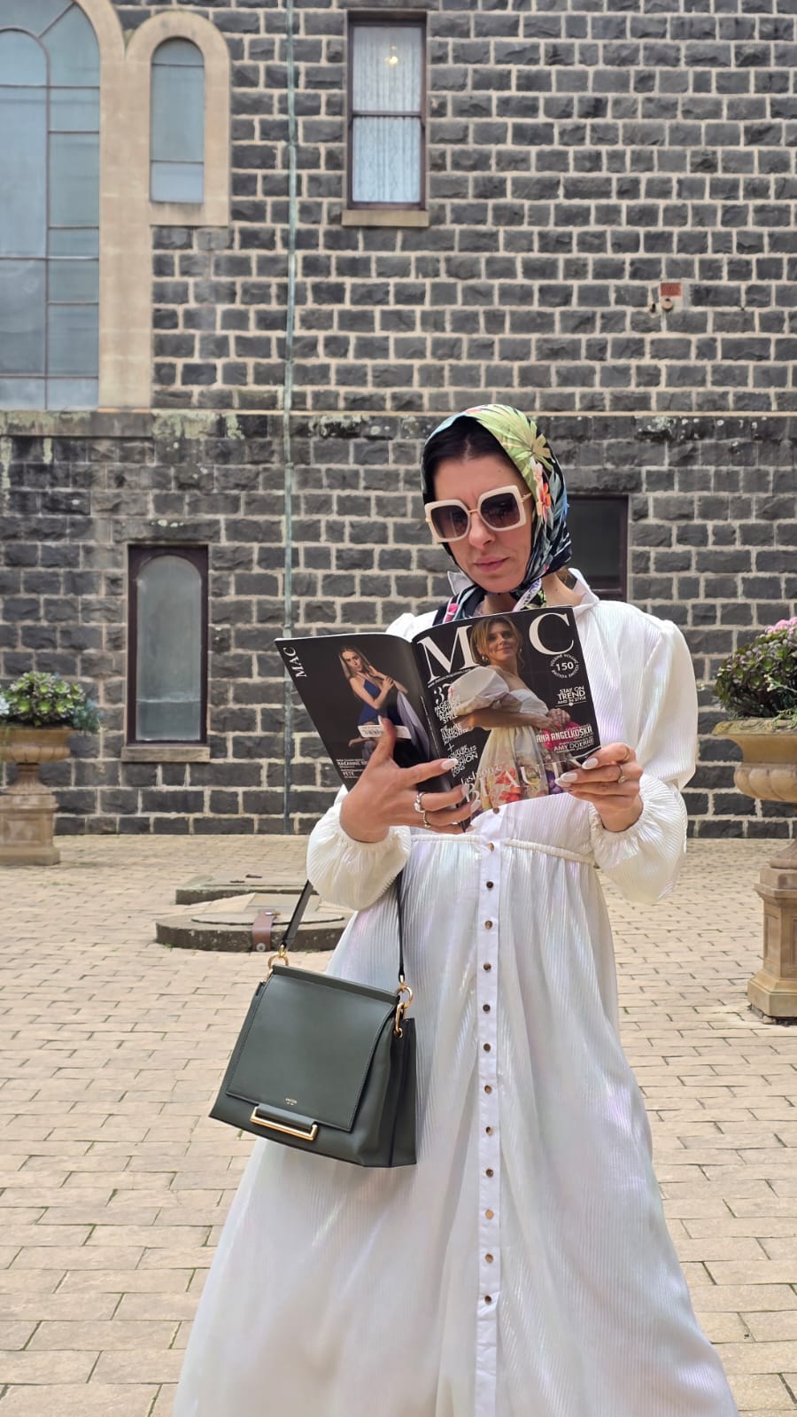 Lightweight chiffon fabric with soft pleating and a gentle floral print  Fully lined for comfort and modest coverage Structured collar for a clean, tailored neckline  Plain central panel with delicate gold button detailing  Elasticated waist for a flexible, flattering fit  Matching belt for adjustable styling and added definition  Ideal for both casual elegance and polished daywear.