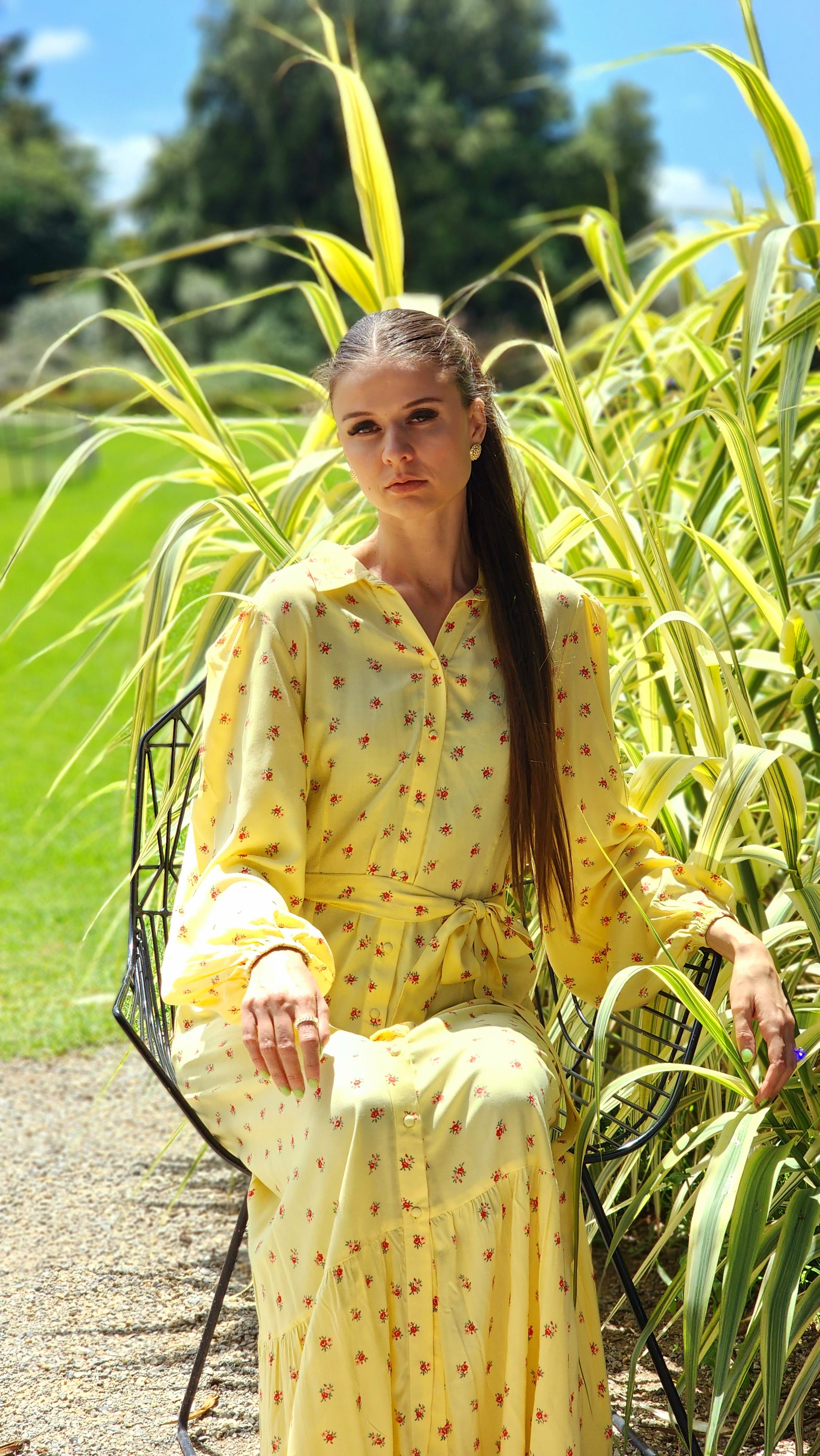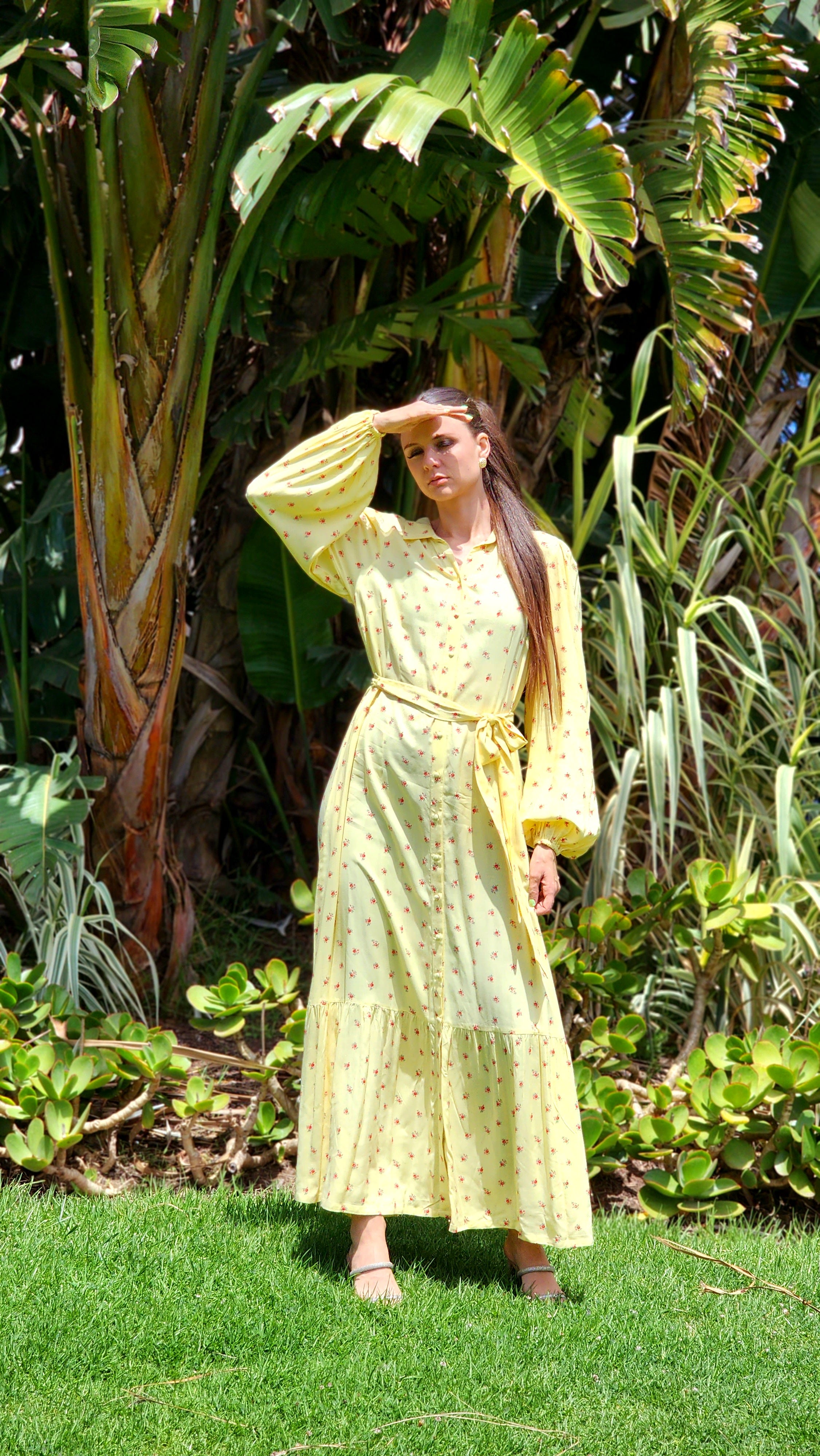 Lightweight rayon fabric, unlined, collared neck, functional button front and separate waist tie.